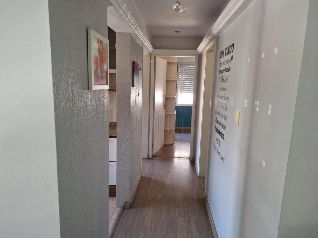 (Apartamento dois dormitórios, sala, cozinha, banheiro, área de serviço, garagem fechada, móveis sob medida nos quartos, cozinha e banheiro. Condomínio com elevador, salão de festas, e brinquedoteca).